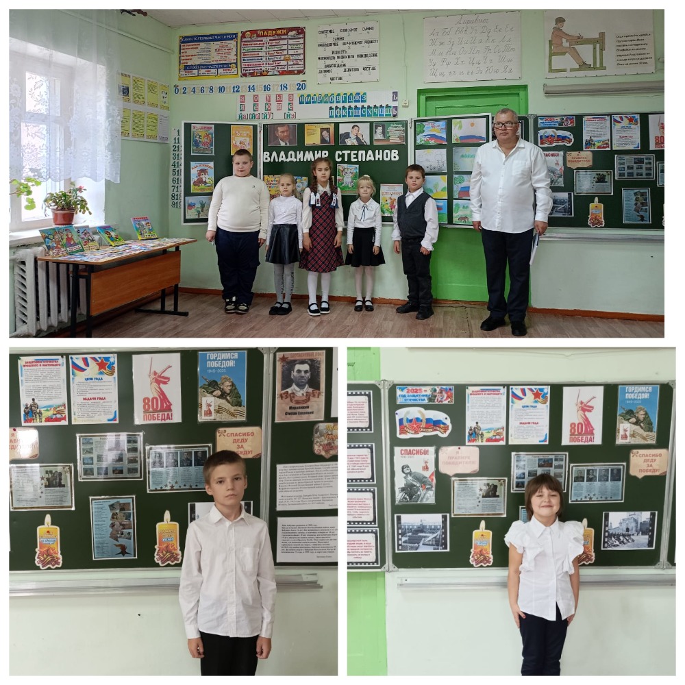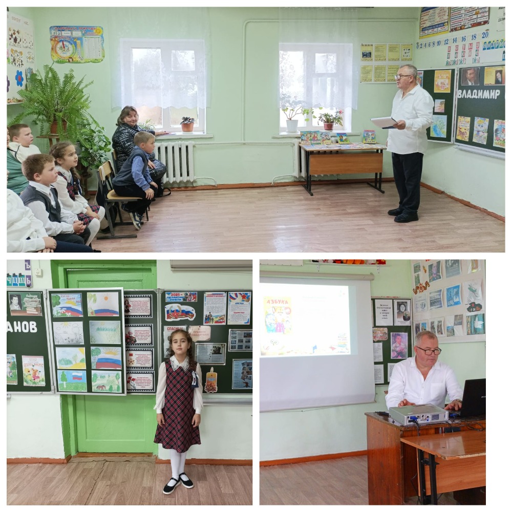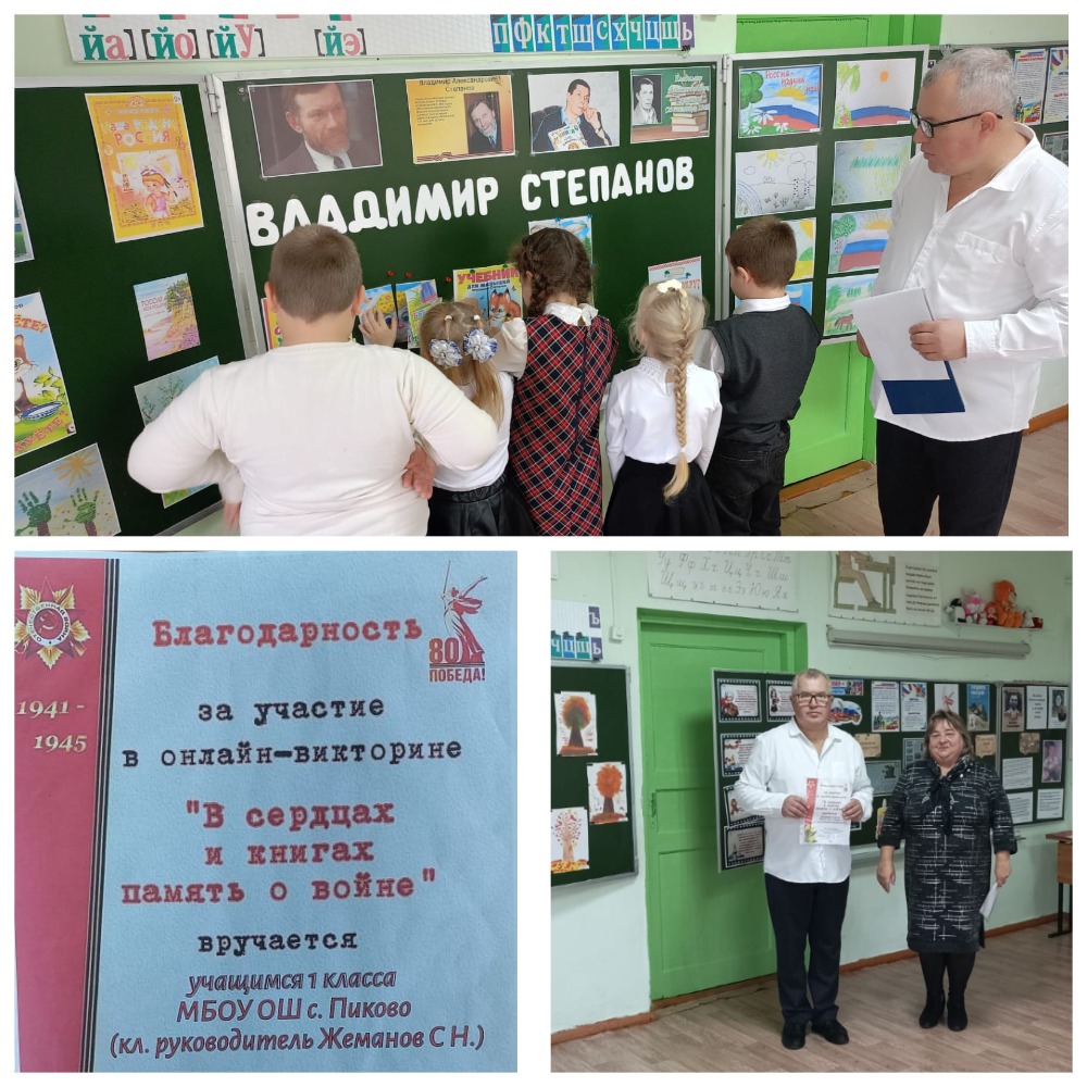 В МБОУ ОШ с. Пиково в рамках работы Творческой лаборатории, районного читательского марафона «Книжная радуга» в целях нравственного и патриотического воспитания обучающихся учителя начальных классов Жеманов Сергей Николаевич и Фомичёва Светлана Алексеевна провели мероприятие «Патриотизм в стихах Владимира Степанова», посвящённое Году защитника Отечества и 80 - летию Великой Победы.