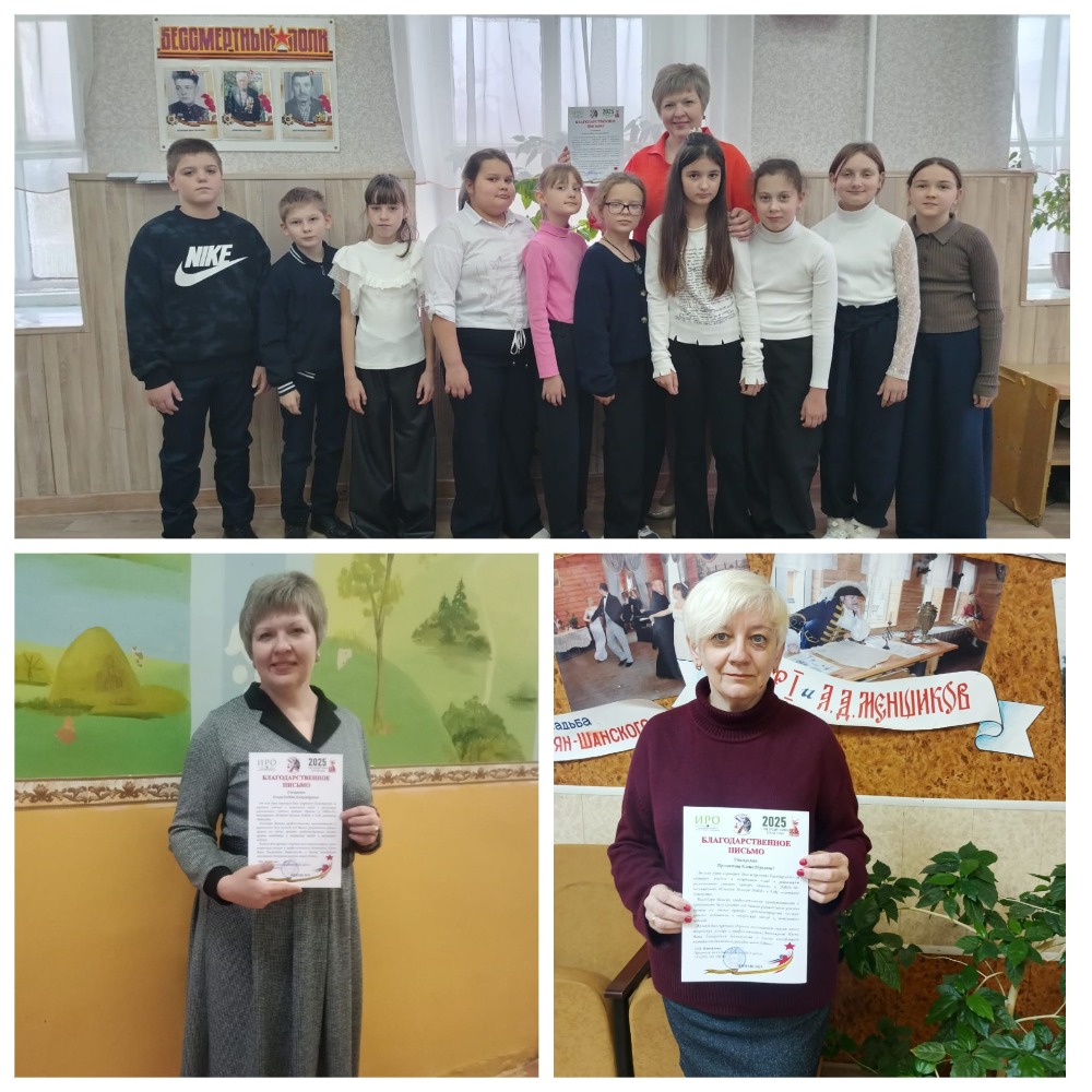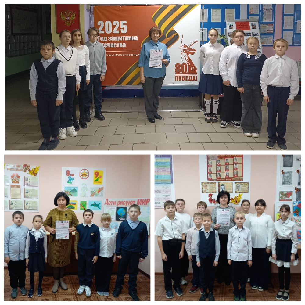 В филиале МБОУ СШ № 4 г. Чаплыгина имени П.П. Семёнова-Тян-Шанского в с.Дубовое в рамках работы Творческой лаборатории учителей начальных классов Чаплыгинского муниципального района и районного читательского марафона «Книжная радуга» педагоги начального образования Шатохина С.А. и Докучаева С.В. провели открытое мероприятие, посвящённое 80-летию Великой Победи и Году Защитника Отечества.