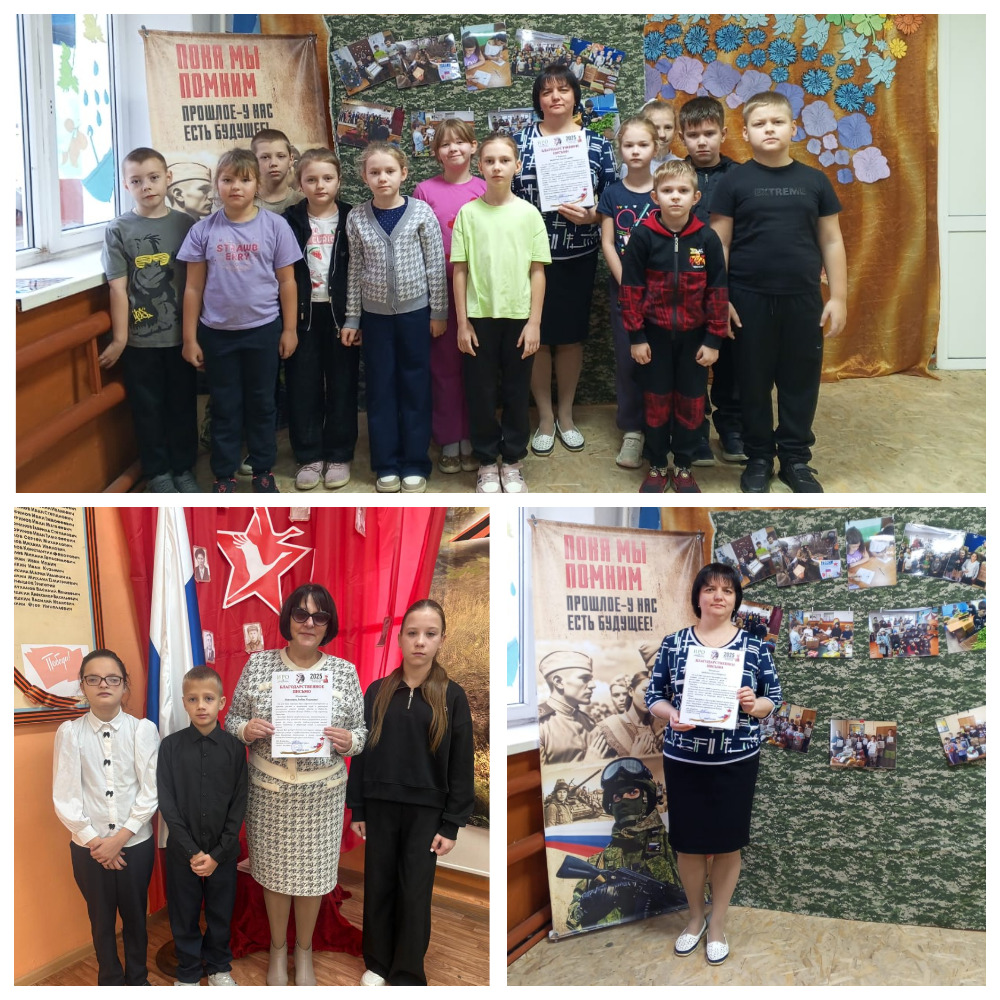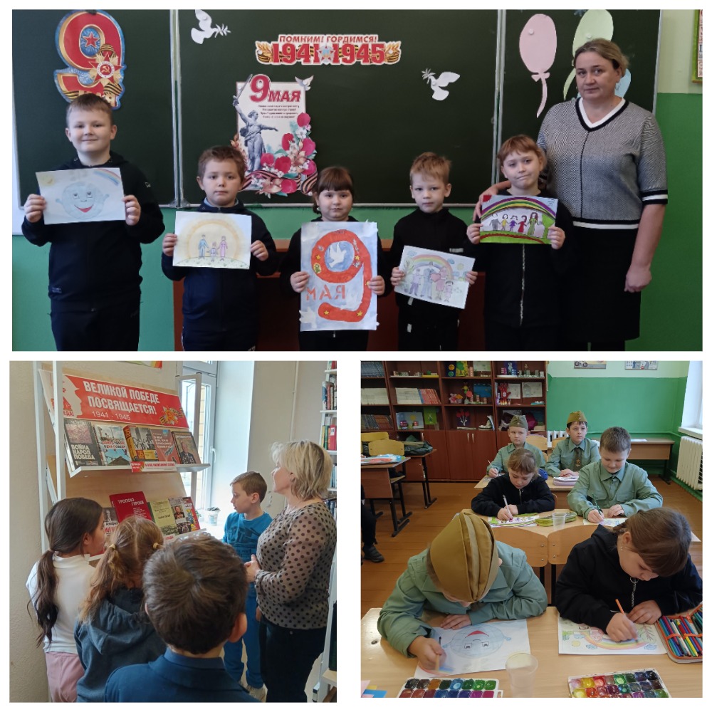 Предварительно ребята посетили школьную и сельскую библиотеки, где для них была организована выставка книг к 80-летию Великой Победы. Библиотекарь Некрасова Г.В. познакомила школьников с детскими произведениями поэтов-фронтовиков. В конце мероприятия многие учащиеся выбрали себе для чтения книги детских писателей о войне. Ученики начальной школы навели порядок у памятника погибшим односельчанам в годы Великой Отечественной войны. Учителем Шатохиной С.А. была оформлена книжная выставка «Дети читают книги о войне». Она познакомила юных читателей с книгами, в которых рассказывается о подвигах наших дедов и прадедов, о смерти, любви и надежде, о горе и радости, о желании жить и самопожертвовании ради других, о том, какой была это война, чем пришлось заплатить советскому народу за победу над фашизмом. Ребята с удовольствием нарисовали рисунки к самым запомнившимся произведениям.