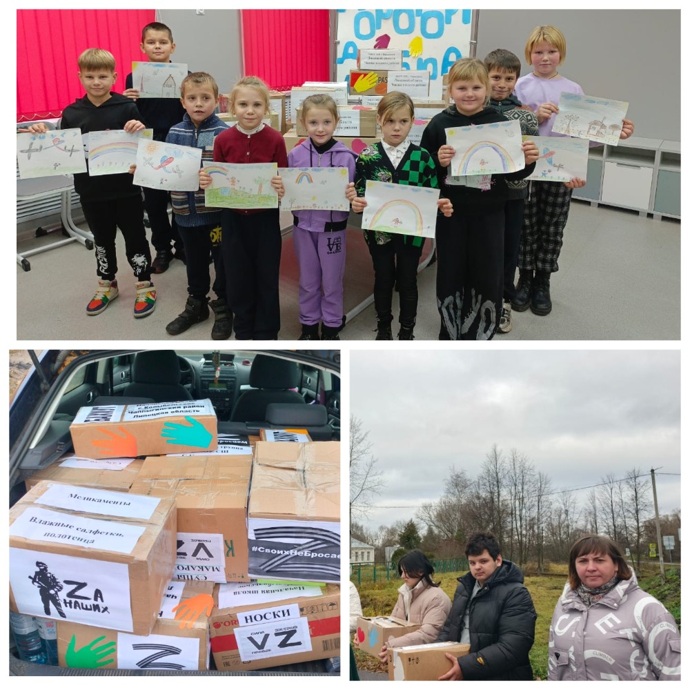 Районная акция Дорога Добра по патриотическому воспитанию младших школьников и оказанию гуманитарной помощи бойцам СВО прошла в Чаплыгинском муниципальном округе. В ноябре этого года в ней приняли участие ученики начальных классов МБОУ СШ с. Колыбельское, обучающиеся МБОУ ОШ с. Нарышкино и филиала МБОУ СШ № 4 г. Чаплыгина им. П.П. Семёнова-Тян-Шанского в с. Дубовое.