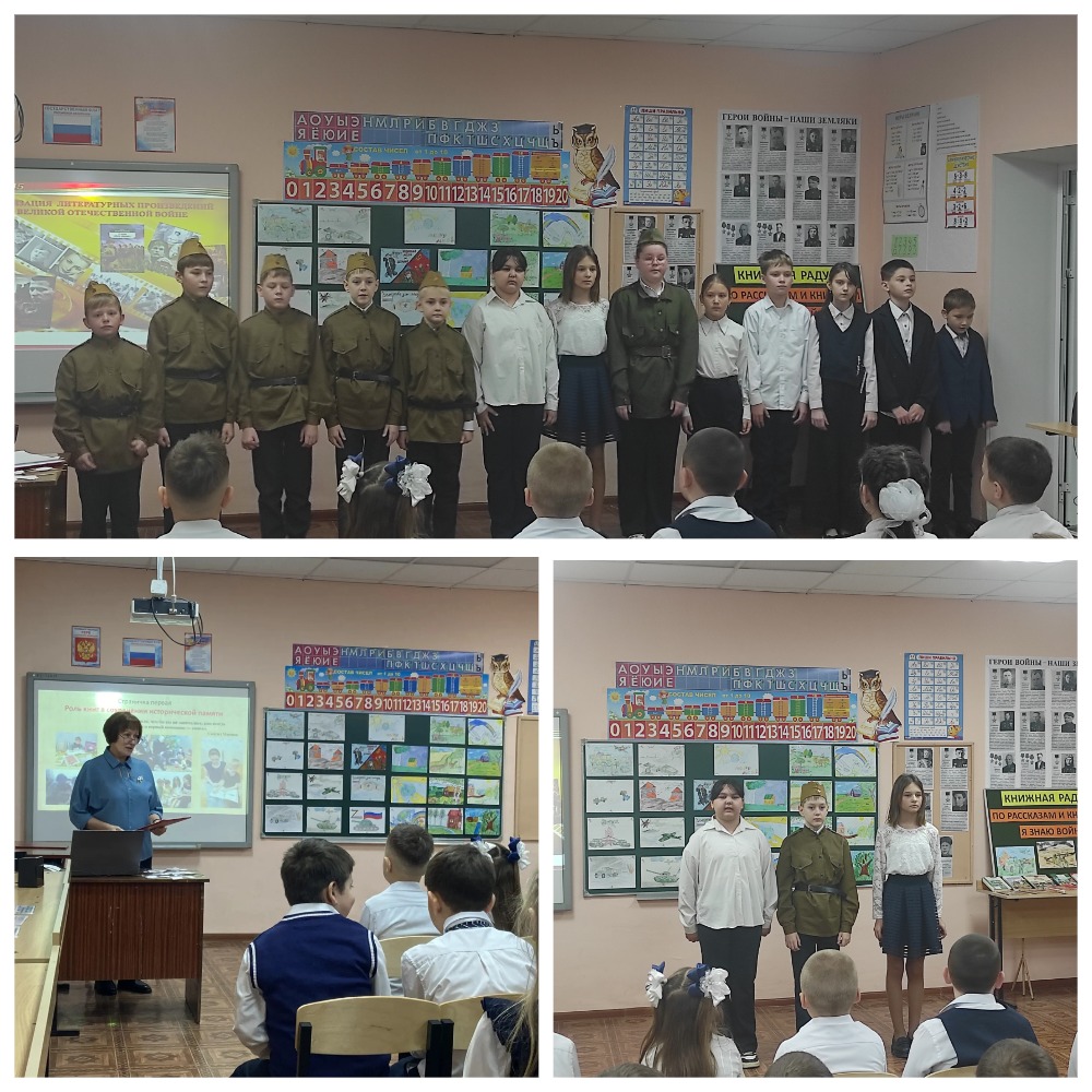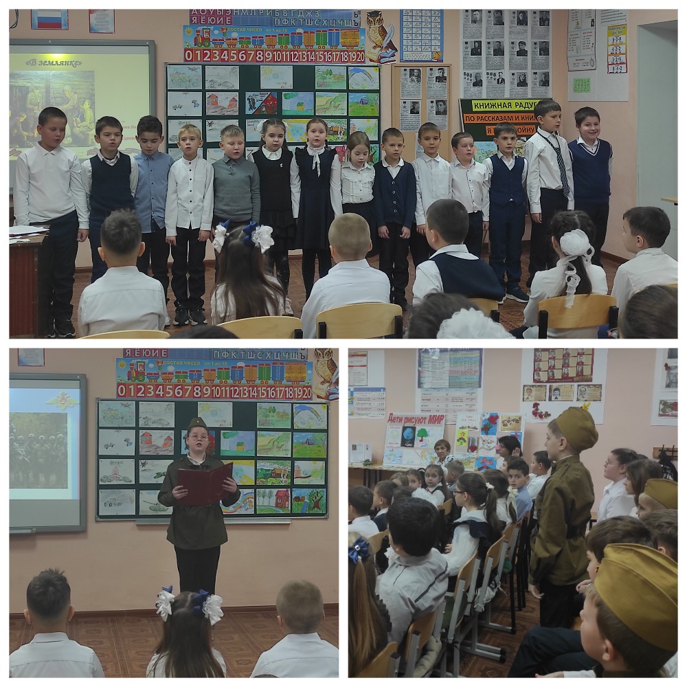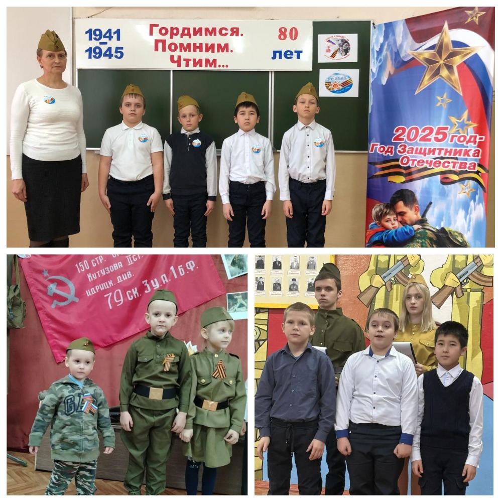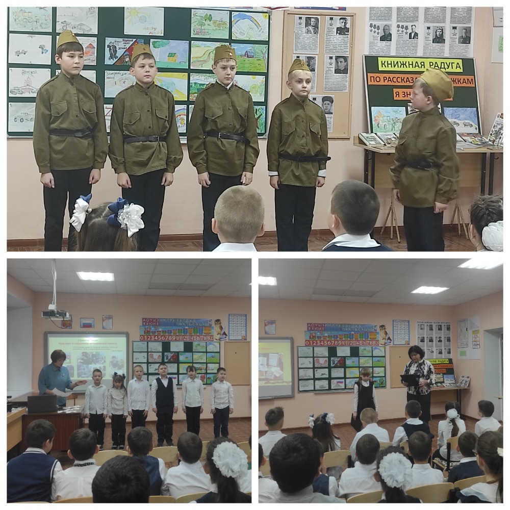 В рамках работы Творческой лаборатории учителей начальных классов Чаплыгинского муниципального района и Читательского марафона «Книжная радуга» в МБОУ СШ с. Колыбельское в течение года проводились различные мероприятия, посвящённые 80-летию Победы в Великой Отечественной войне и году защитника Отечества. Завершающим событием в юбилейный год стала литературно-музыкальная композиция «По рассказам и книжкам я знаю войну».