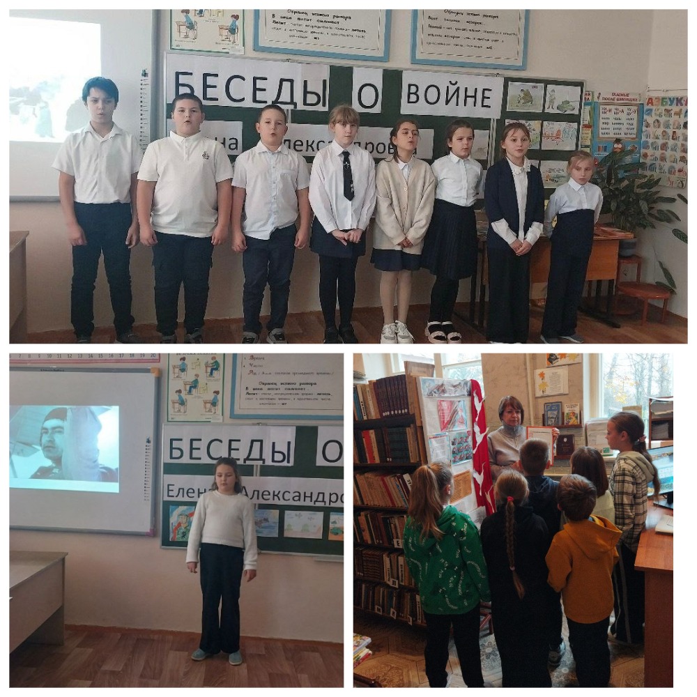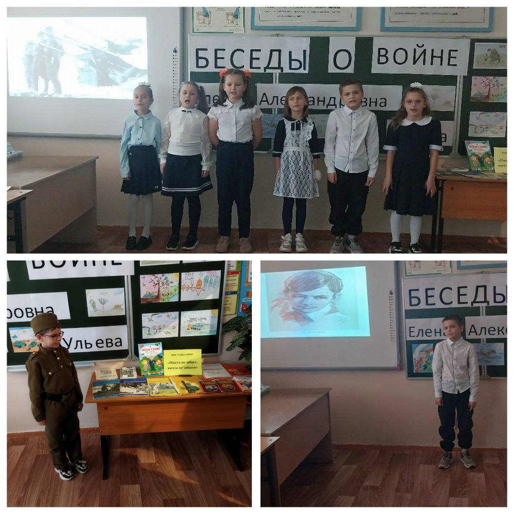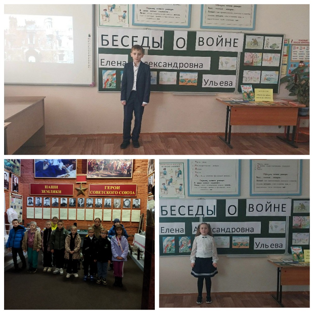 В филиале МБОУ СШ № 1 с. Кривополянье в с. Новополянье в рамках работы Творческой лаборатории учителей начальных классов Чаплыгинского муниципального района и районного читательского марафона «Книжная радуга» педагоги начального образования Вострикова Т. А., Коннова Л.В., Пятых О. Н. провели открытое мероприятие « Беседы о войне» по произведениям Елены Александровны Ульевой, в которых рассказывается о Великой Отечественной войне, о том, какое оружие использовалось во время войны, о маленьких и больших героях, о мужестве, подвиге и бессмертной славе защитников Родины. Интересное повествование, хорошие иллюстрации и вечное напоминание о мужестве нашего народа.