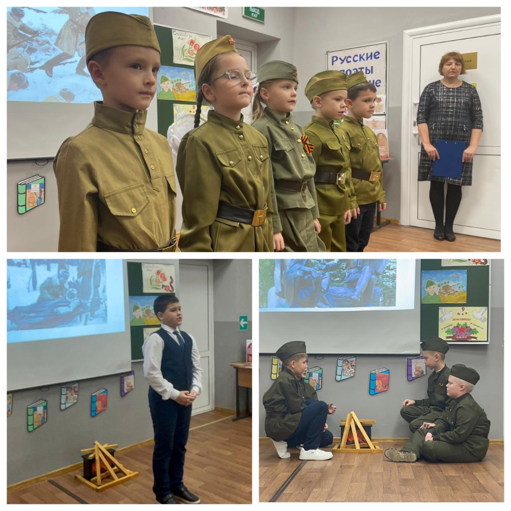 Педагоги начального образования нашей школы проводят огромную работу по патриотическому воспитанию обучающихся. Ребята младших классов с учителями и родителями участвуют в акции по сбору гуманитарной помощи участникам СВО, пишут письма бойцам, рисуют рисунки на военную тематику. Дети являются частыми посетителями музея Боевой Славы. Доброй традицией стало посещение 9 Мая обелиска погибшим воинам, возложение цветов, исполнение военных песен. В течение года в нашей школе проводилось несколько мероприятий патриотической направленности: «День белых журавлей», «Этих дней не смолкнет слава», «Конкурс стихотворений о войне». Учителя Усачёва И.И. и Кузнецова Т.Н. со своими классами принимали участие в региональном онлайн-проекте «Вместе к Победе - 48». Началось мероприятие со стихотворения Лебедева-Кумача «Священная война». Строки «Вставай, страна огромная, Вставай на смертный бой…» никого не оставляют равнодушными. Это стихотворение - призыв, поднимающий боевой дух народа для победы над врагом(Викулина Е.Н., 1Б). Стихотворение Булата Окуджавы «До свиданья, мальчики» — это надрыв, крик души при расставании. Поэт верит, что будет встреча. (Усачева И.И., 2Б). 3Б класс (Епифанова Е.И.) продемонстрировал литературную композицию «На привале», на основе произведения «Василий Тёркин» А.Твардовского. Не могли мы не вспомнить стихотворение-легенду К. Симонова «Жди меня», которое стало родным для каждого солдата Великой Отечественной войны. (Кузнецова Т.Н., 4Б).