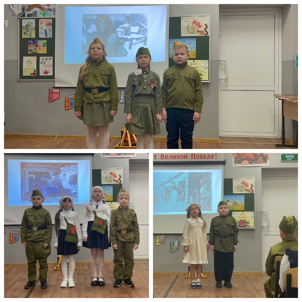 А. Барто продолжает женскую тему войны. Стихотворение «Алёнка» об одиннадцатилетней девочке, которая была разведчицей в партизанском отряде. В стихотворении рассказывает о героических девушках-медсёстрах, которые на своих плечах выносили раненых бойцов. (Гаврилова И.В., 2А). Нет в России, которая бы не понесла потери в годы Великой Отечественной войны. Наши родные ждали письма с фронта, а вместо них приходили похоронки. Вера Катасонова, наша землячка, написала стихотворение «С фронтов летели похоронки» (Панкратова А.А., 3А). С.В. Михалков выступал как патриот, миротворец, автор стихов Гимна СССР и Российской Федерации. Его стихотворение «После Победы» призывает к бережному отношению к миру, необходимости ценить каждый мирный день. (Богданова Т.Н., 1А). В ходе данного мероприятия ребята ещё раз прикоснулись к прошлому нашей страны. Прочувствовали боль от потери родных, представили ужас войны. Произведения о Великой Отечественной войне являются важной составляющей патриотических чувств. Прозвучавшие стихи о подвигах, мужестве солдат и партизан, защищавших нашу страну, не жалевших себя в борьбе - являются высокохудожественным средством воспитания патриотизма и любви младших школьников к своей Родине.