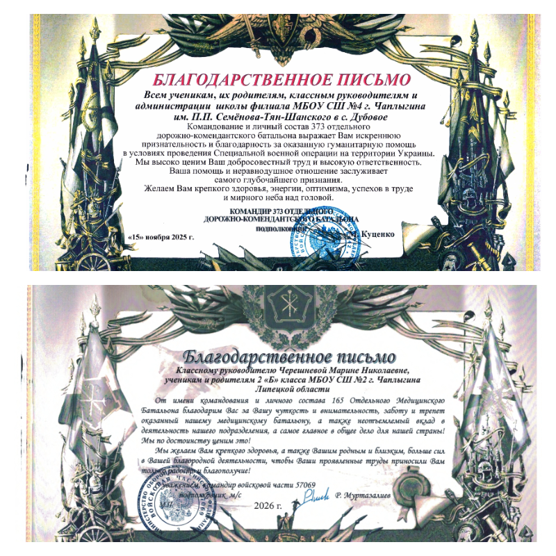 В январе 2026 года в Чаплыгинском муниципальном округе состоялся очередной сбор гуманитарной помощи для бойцов СВО, в котором самое активное участие приняли учащиеся начальных классов, старшеклассники, родители и педагоги. Мы уверены, что наши защитники, которые находятся далеко от дома, выполняют сейчас очень важную и непростую задачу - защищают нашу Родину, получив посылки, письма, рисунки, сувениры от ребят из родных мест знают, что им верят, ими гордятся и ждут их возвращения домой.