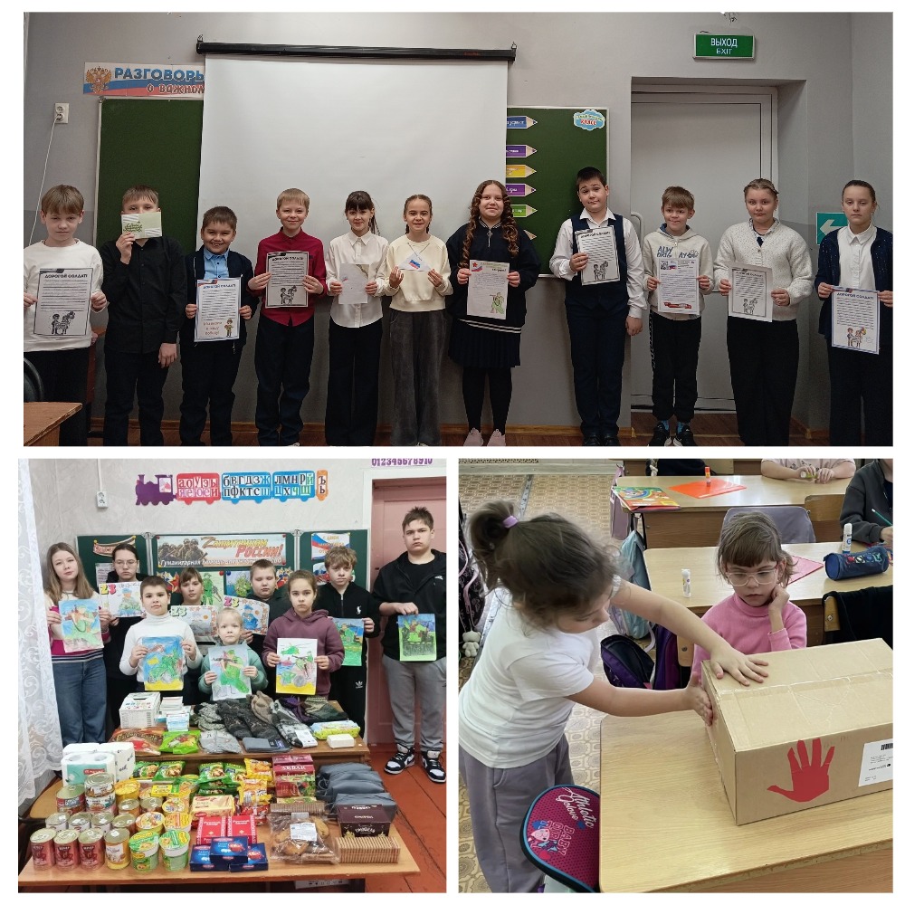 Более двух недель школьники писали письма, рисовали рисунки для военнослужащих СВО. Вместе с педагогами и родителями ребята собирали посылки. Каждая посылка была собрана с теплотой, любовью, благодарностью и передана нашим волонтёрским группам «Колыбель», «СилаVправде», «СВОих не БРОСАЕМ». Посылки из нашей малой родины уже доставлены в зону боевых действий и в госпитали. Мы уверены, что частичка нашего тепла, вера в победу обязательно придаст силы защитникам нашей Родины.