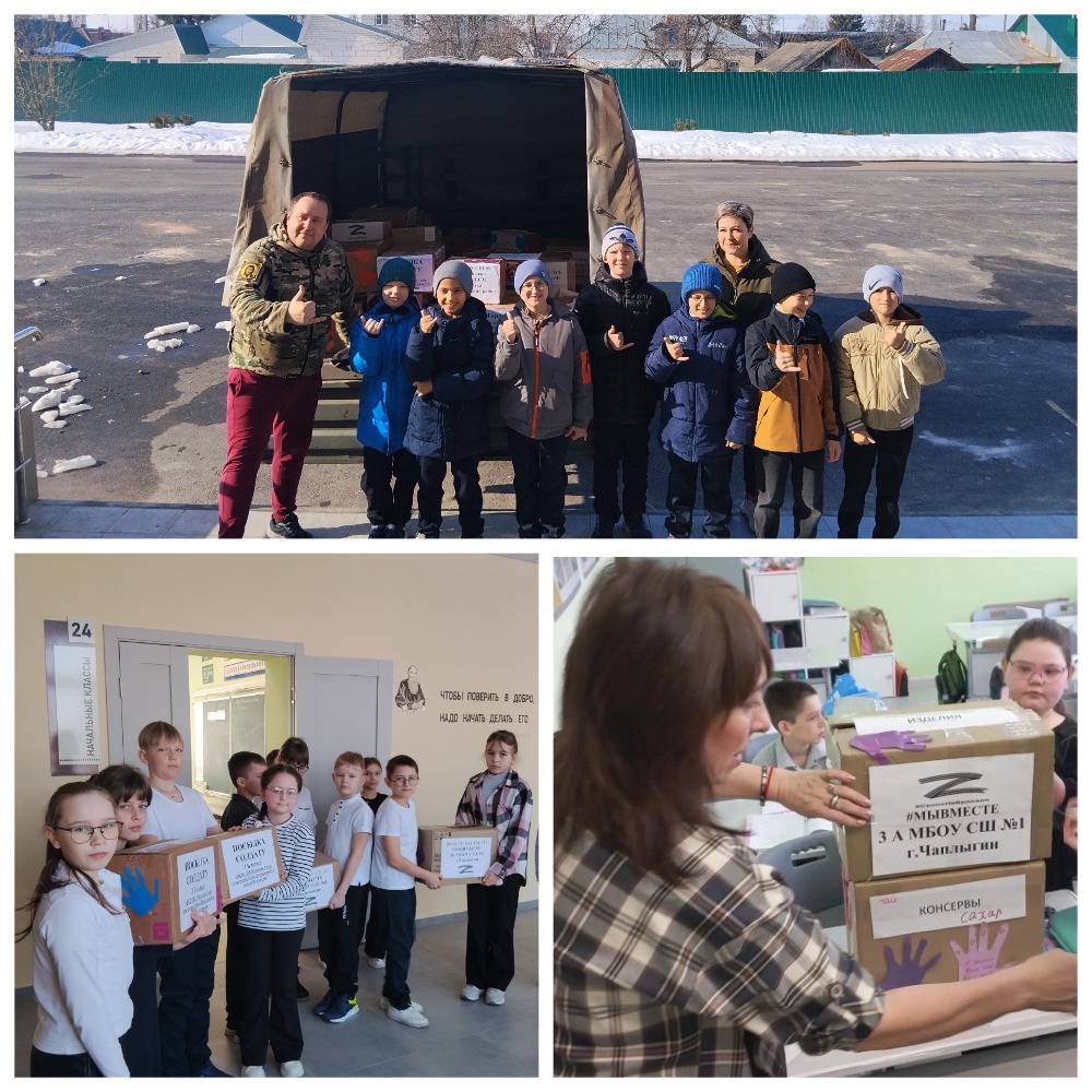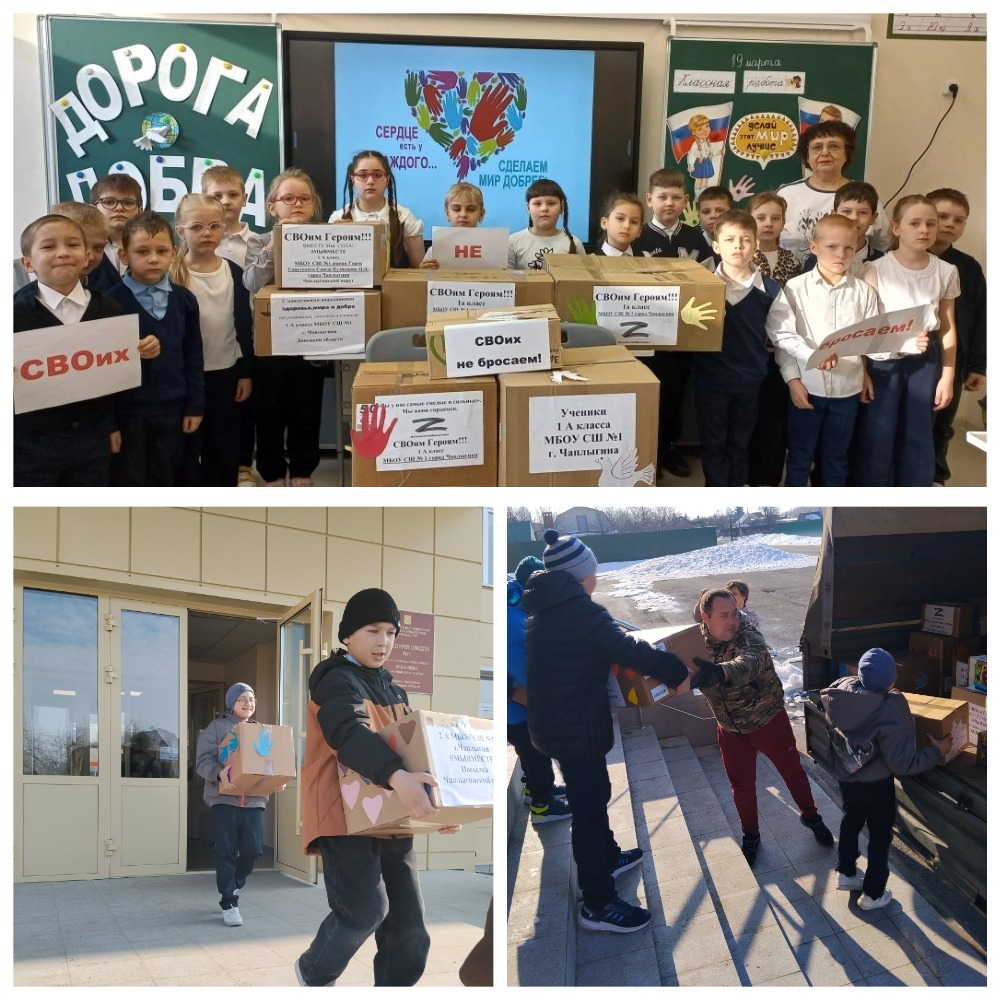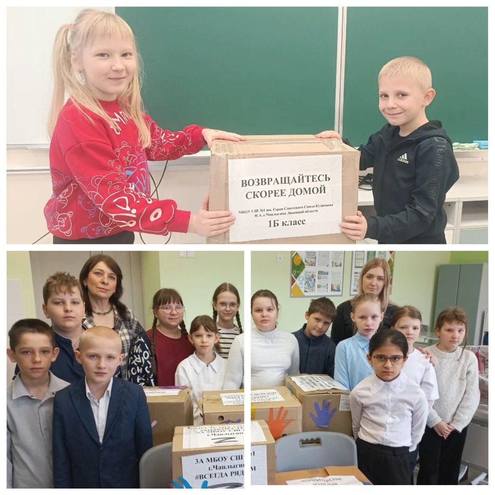 С большой заботой и душевным теплом учащиеся начальных классов МБОУ СШ №1 им. Героя Советского Союза Кузнецова Н.А г. Чаплыгина, учащиеся филиала МБОУ СШ №1 им. Героя Советского Союза Кузнецова Н.А. в с. Ломовое, родители, педагоги, работники школ собрали посылки для наших бойцов, участвующих в СВО. Каждая вещь в этих посылках была собрана с мыслями о наших защитниках, с пожеланиями победы, крепкого здоровья и скорейшего возвращения домой.
